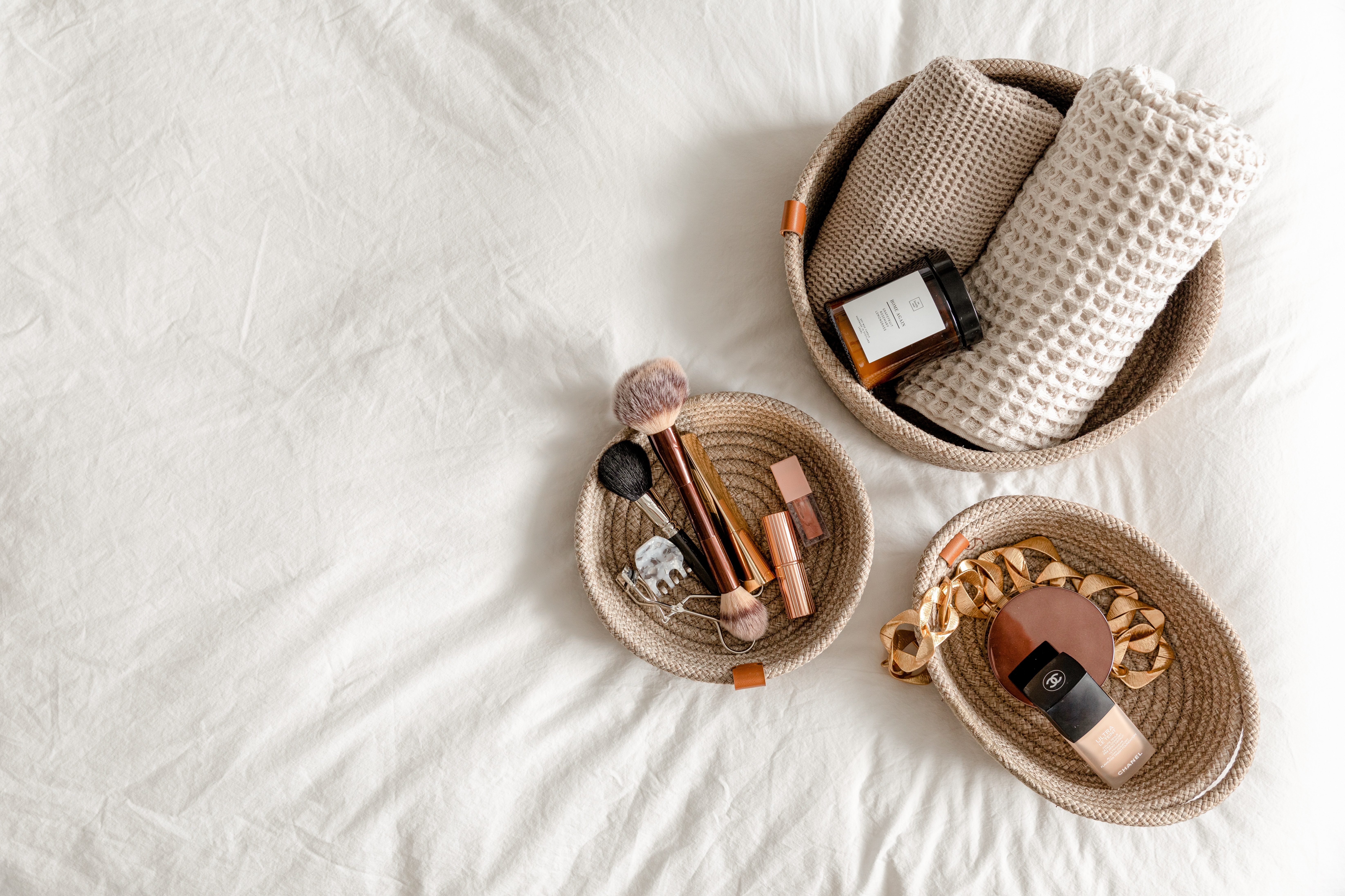 Taya Living 的產品皆以 可回收且極耐用的聚丙烯織繩 手工編織而成,擁有類似天然材質的手感,卻更加 防水、防黴、耐磨與易清潔,適合各種使用情境,無論是室內收納、野餐外出,或是日常包袋使用,都能長久陪伴生活。